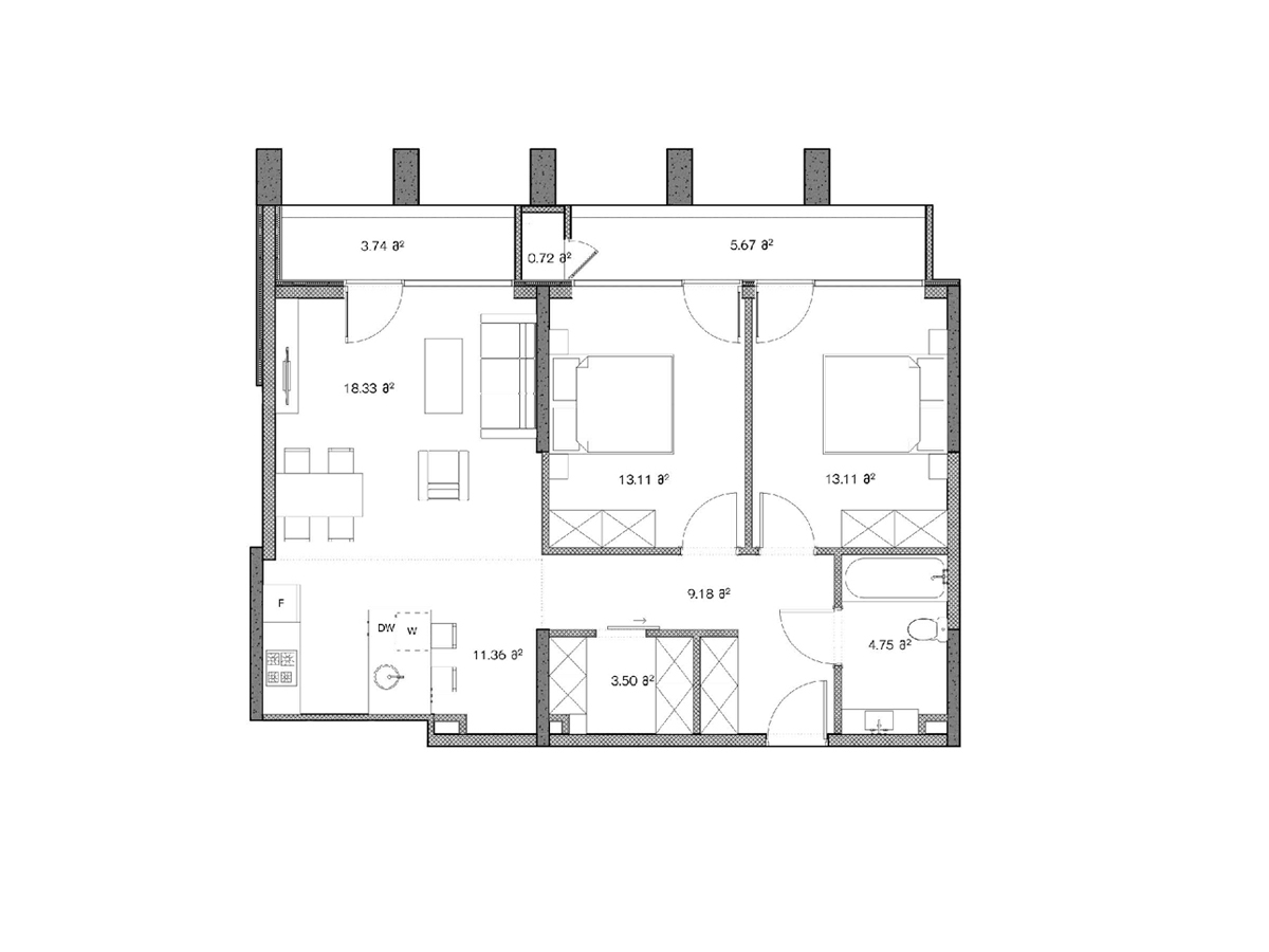 საცხოვრებელი – 75.97 კვ.მ