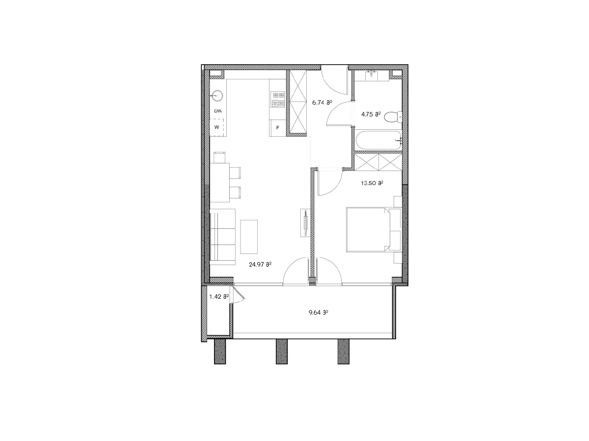 საცხოვრებელი – 51.82 კვ.მ
